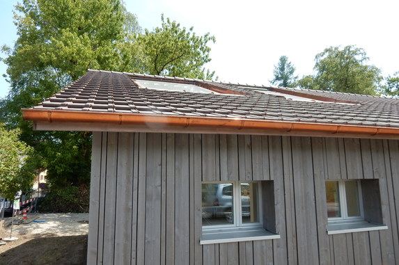 Ziel war es eine Zusammengehörigkeit der beiden Gebäude zu zeigen. Der Neubauteil ist als Holzrahmenkonstruktion gebaut und gemäss aktuellen energetischen Gebäudestandard geplant. Der Altbau ist ein einfach konstruierter Holzbau aus dem Jahr 1948. Die Gebäudehülle des Altbaus wurde gedämmt, Fenster und Türen erneuert und ebenfalls auf einen zeitgemässen baulichen und energetischen Stand gebracht. Nicht zuletzt können so auch Heizkosten gespart werden.